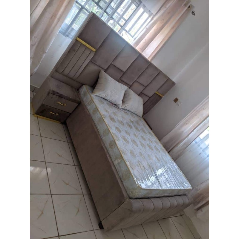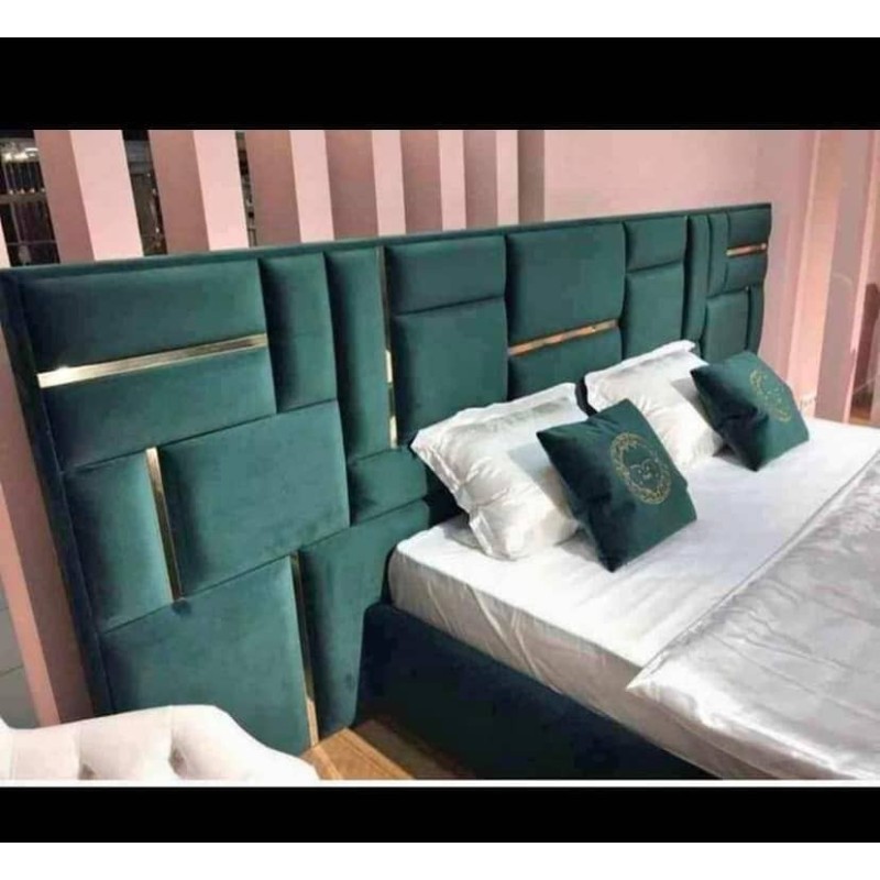 Ajoutez une touche de luxe et de modernité à votre chambre avec ce lit rembourré en din. Son design contemporain avec des accents géométriques dorés apportera un style élégant à n’importe quelle chambre. Le velours doux et capitonné sur la tête de lit et le pied de lit offre non seulement une esthétique sophistiquée mais également un confort incomparable. Fabriqué avec une structure en bois massif, ce lit garantit durabilité et stabilité. Il est disponible en plusieurs tailles pour s’adapter à vos besoins et est facile à monter. Transformez votre espace de repos avec ce meuble haut de gamme.